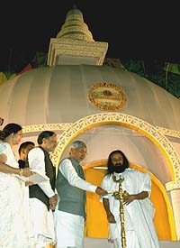 Over 65 local artistes were reportedly hired to perform at the function. A huge replica of Lord Buddha's Shanti Stupa at Rajgir covering an area of 3000 square feet has been erected by the artistes hired from Kolkata for the Guru. The total camp area covers 5.6 lakh square feet at the historic Gandhi Maidan of Patna. Altogether, 10 large projection screens, two special LCD screens fitted with special digital sound effects and 44 toilets have been set up at the function site. Over 100 musicians are expected to perform on the stage along with the guru. What